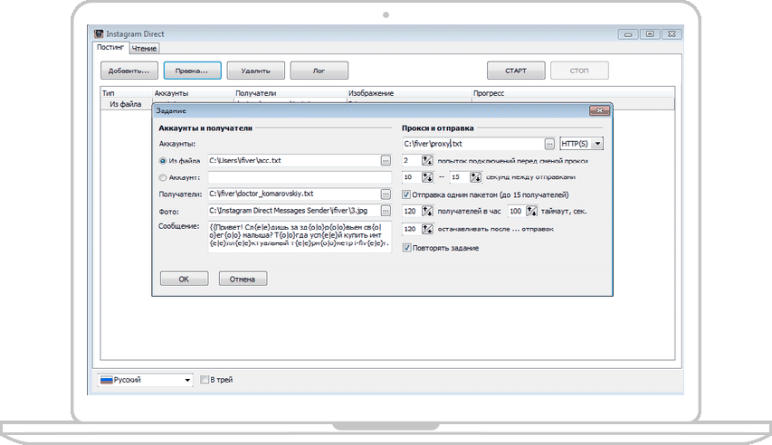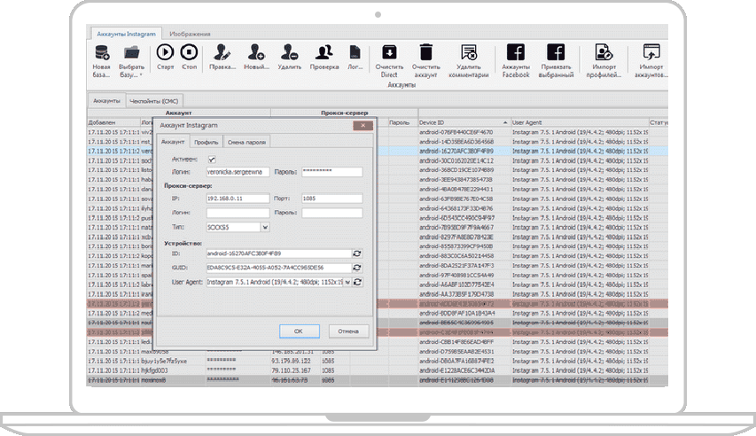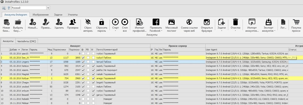 Приложение для массового заполнения и ведения аккаунтов Instagram